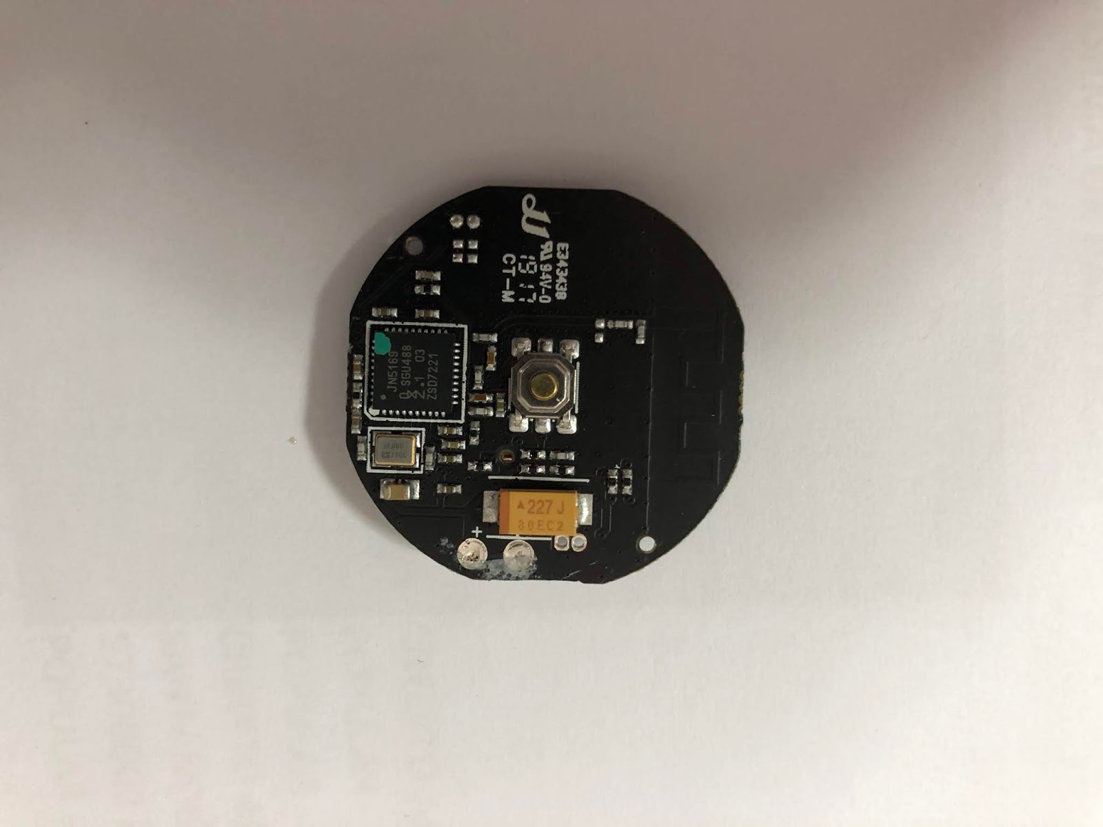 En esta placa es donde soldaremos 2 cables el lado del botón central. Exactamente en los puntos que os señalo en la imagen: