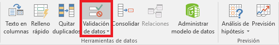 Después tenemos que ir a la celda o columna que queremos fijar a dichos valores y seleccionandolas pulsaremos en Datos – herramientas de datos – validación de datos