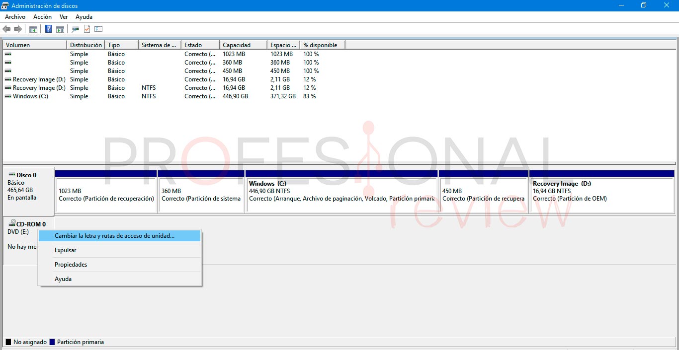 – Selecciona la antigua letra de unidad y haz click en Quitar.