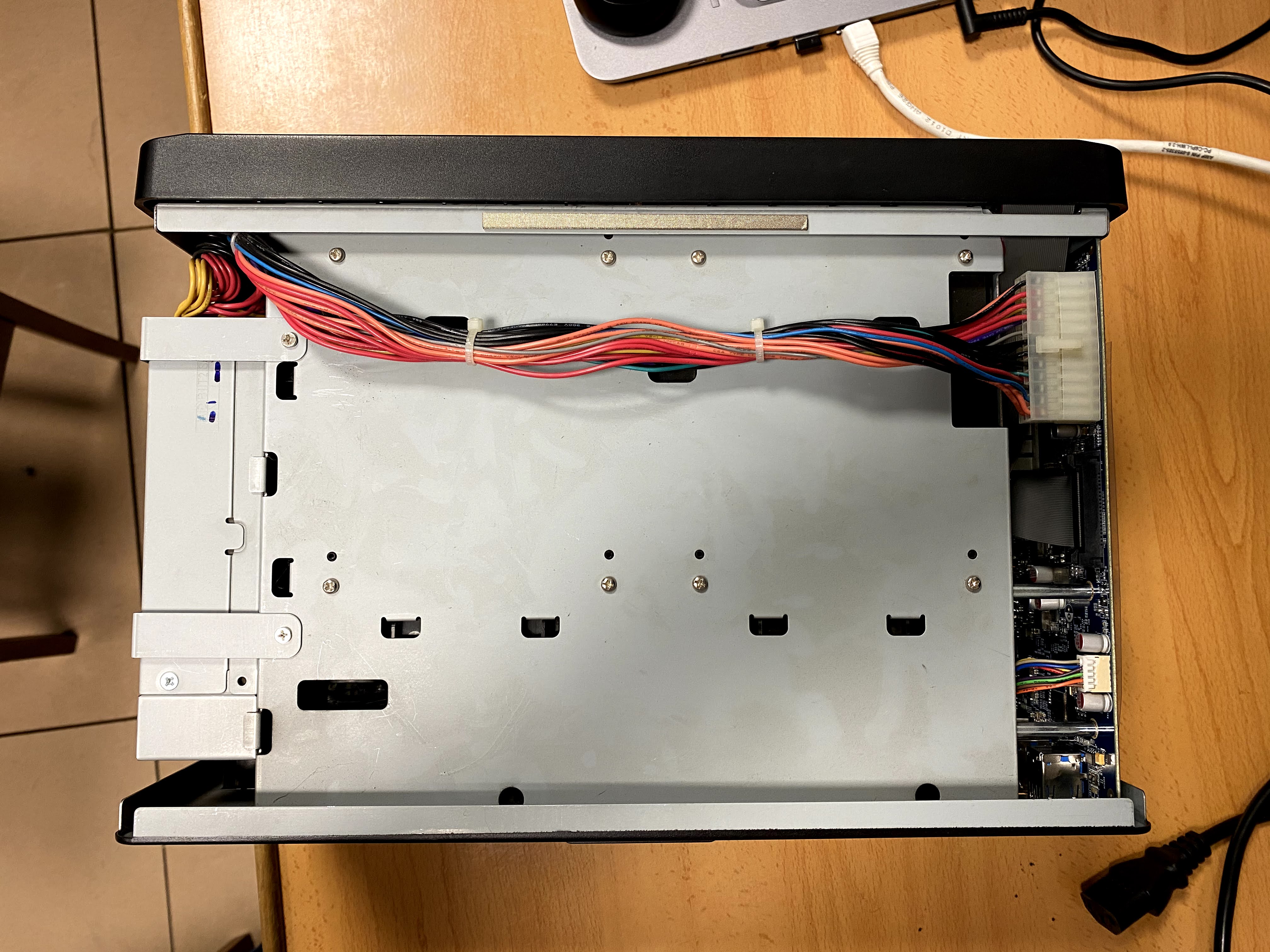 1. Abrir la carcasa superior del NAS y veremos en un lateral la placa base la cual tenemos que extraer con cuidado y soltando los buses…